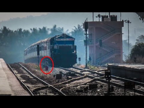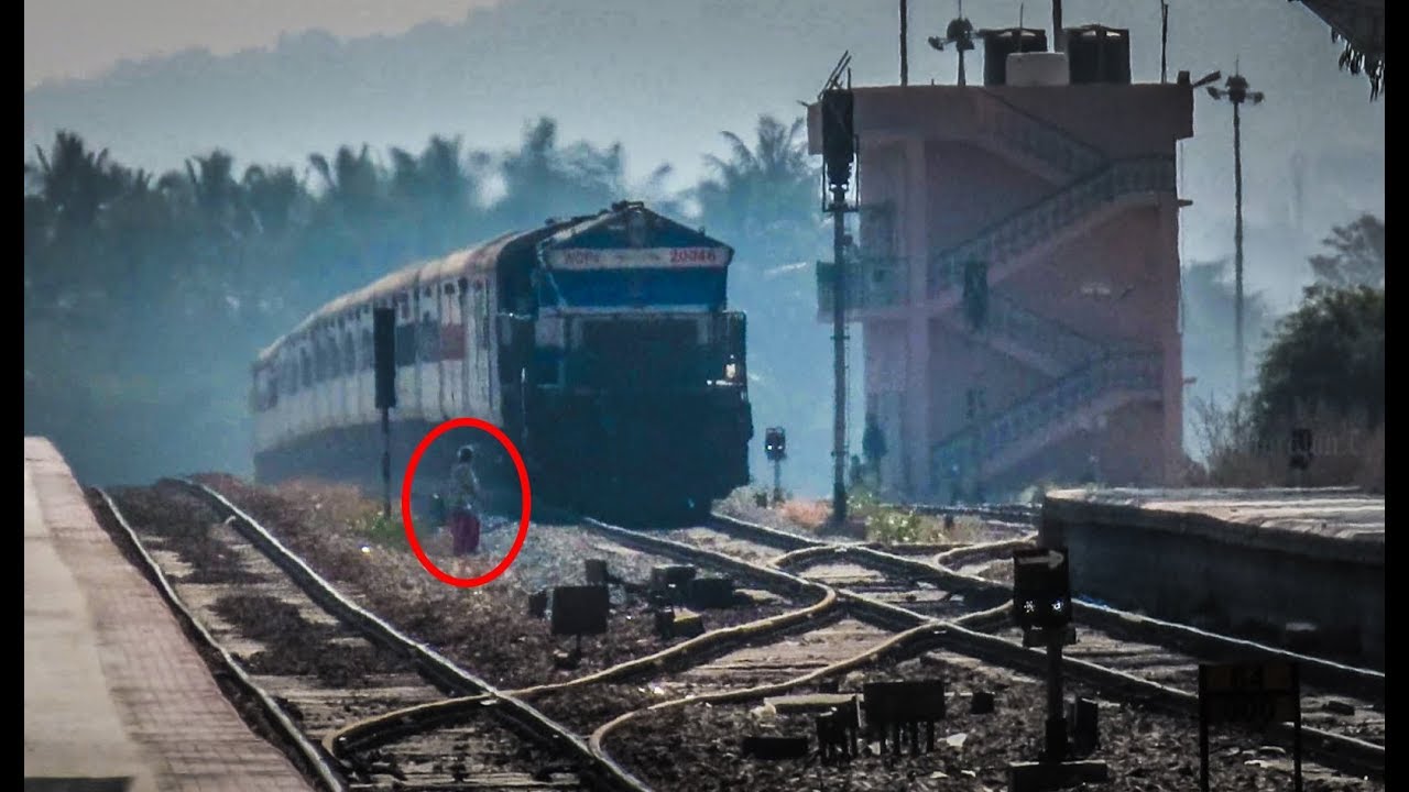 I guess now many will understand why Indian trains honk a lot. The lady was really lucky to escape. Not sure what she was thinking with a speeding train approaching the station.