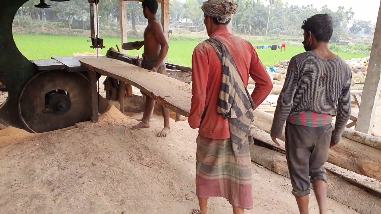 Crocked Wood of Mahogany Cutting to Smart Shape by Expert Workers in Saw Mill of Rural Area of BD